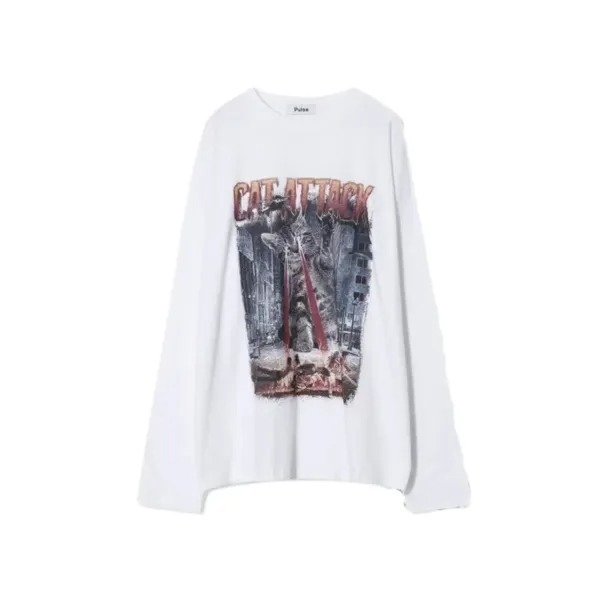 貓斯拉攻擊美式塗鴉長袖上衣/3COLORS