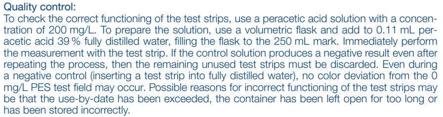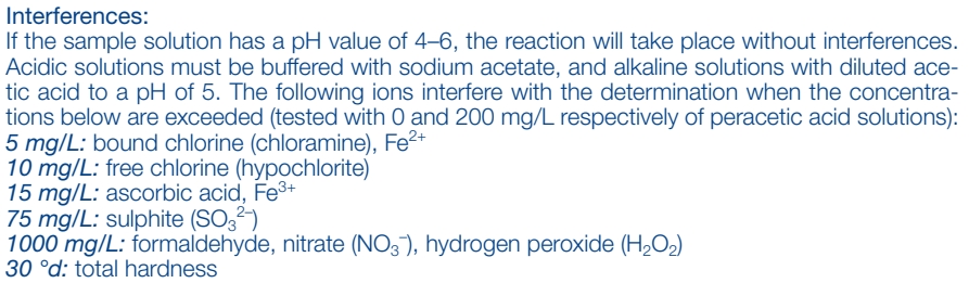 過氧乙酸(過醋酸) 目視:50–500 mg/L Peracetic acid