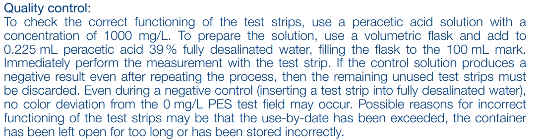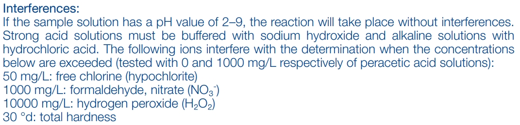 過氧乙酸(過醋酸) 目視:500–2000 mg/L Peracetic acid