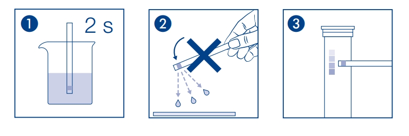 - 取出所需的測試條數量,將試紙浸泡於溶液中,時間約2秒。