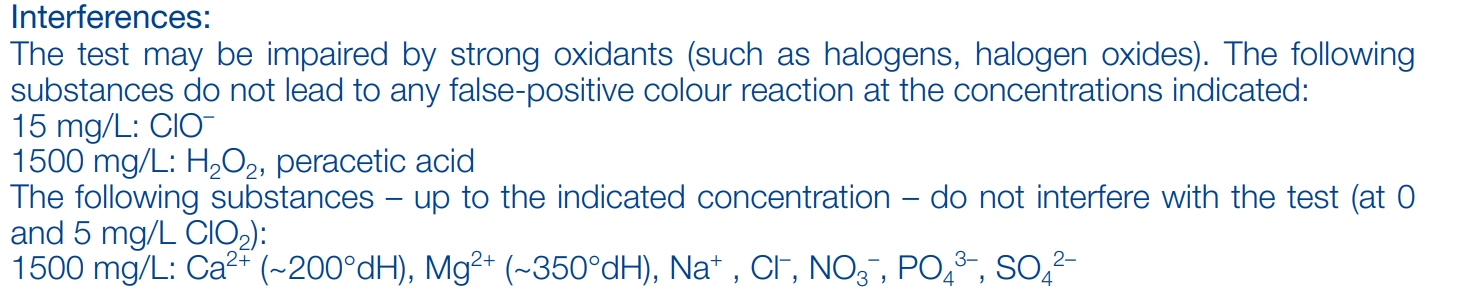 二氧化氯ClO₂ 目視:0.25–15 mg/L Chlorine dioxide